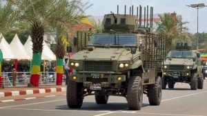 الجيش المالي عرض أحدث معداته العسكرية، من مقاتلات مثل “سوخوي-24” التي حلّقت فوق العاصمة وسط دوي هائل، إلى المروحيات الهجومية والنقل والدعم، والطائرات المسيّرة، إضافة إلى مدرعات متطورة بينها عربات مضادة للألغام ومدرعات برمائية، فضلًا عن ناقلات جنود وآليات لوجستية، وصواريخ قصيرة المدى، وقوارب نهرية.