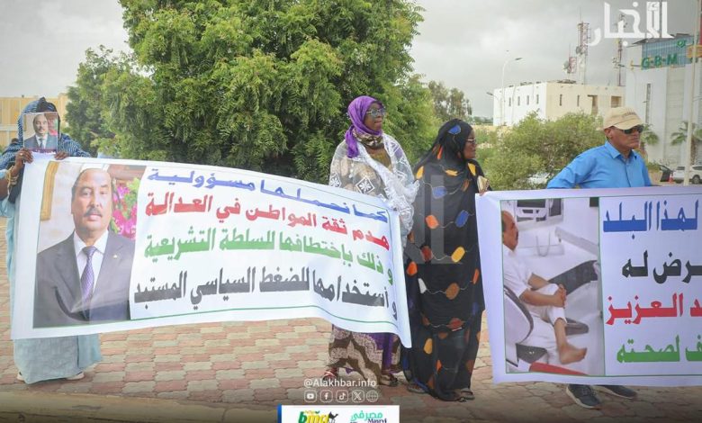 ورفع المحتجون لافتات تُحمل السلطات مسؤولية ما تعرض له ولد عبد العزيز من “ظلم واستنزاف لصحته”، كما حملوا القضاء مسؤولية “هدم ثقة المواطن في العدالة بسبب ما وصفوه باختطاف السلطة القضائية واستخدامها أداة للضغط السياسي المستبد”.