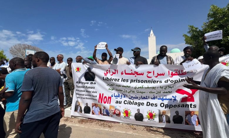 ورفع المحتجون لافتات وشعارات تحمل “أطلقوا سراح سجناء الرأي، لا لاستهداف المعارضين الأوفياء” إضافة لأسماء معتقلين بينهم الرئيس السابق محمد ولد عبد العزيز وابلاي با، وسيدنا عالي ول محمد خونه.