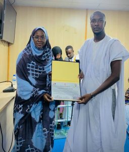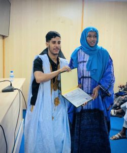 وفي ختام الحفل، تم تكريم الأستاذ عادل ممثل الاتحاد العربي للعمل التطوعي، تقديرًا لجهوده ودعمه المتواصل للشباب والعمل التطوعي في موريتانيا كما تم توزيع الشهادات على المشاركين وسط أجواء مفعمة بالفخر والإنجاز.