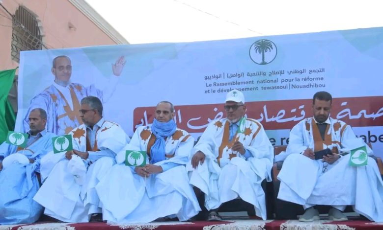 نظم حزب التجمع الوطني للإصلاح والتنمية (تواصل)، مساء اليوم بمدينة نواذيبو، مهرجانًا جماهيريًا حاشدًا تحت شعار «عاصمة الاقتصاد ترفض الفساد»، بحضور واسع لأنصار الحزب ومناصريه.