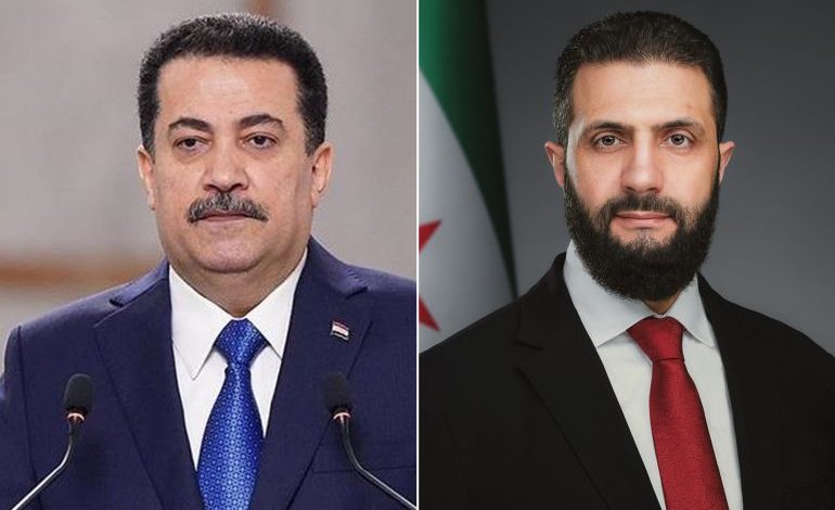جاء ذلك خلال اتصال هاتفي أجراه الشرع مع السوداني، وفق بيانين صدرا عن الرئاسة السورية والمكتب الإعلامي لرئيس الحكومة العراقية.
