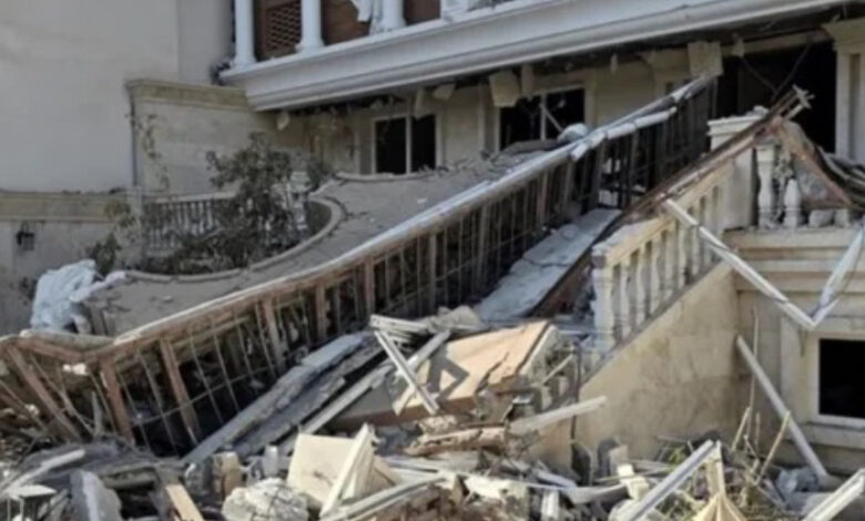 وأظهرت مشاهد بثها التلفزيون الرسمي الإيراني واجهة المبنى وقد نُسفت بالكامل، مع تناثر الأنقاض في الشارع المحيط.
