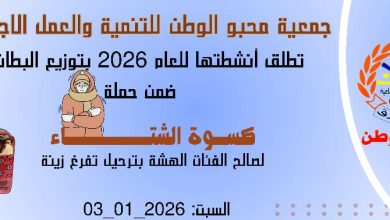 نظّمت جمعية محبو الوطن للتنمية والعمل الاجتماعي، صباح اليوم 03/12/2026 ، نشاط كسوة الشتاء لصالح النساء معيلات الأسر بحي ترحيل…